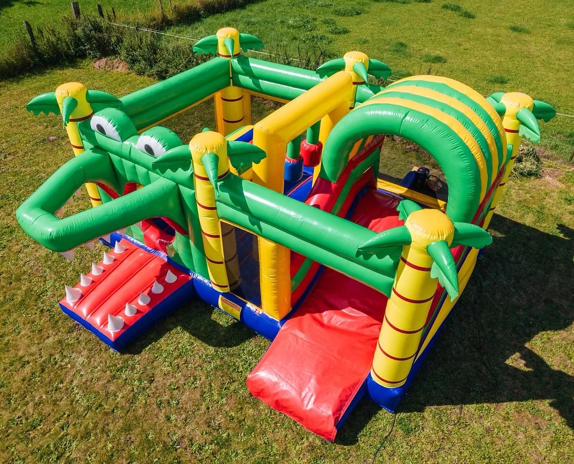 Dit krokodillen springkasteel heeft alles in huis om kinderen uren bezig te houden. Binnenin ontdekken ze een hindernissenparcours en aan het einde wacht een glijbaan voor extra plezier. Ideaal voor wie net dat tikkeltje meer actie zoekt op een feestje of evenement.